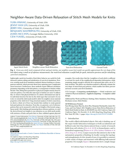 Stitch Meshes for Modeling Knitted Clothing with Yarn-level Detail, SIGGRAPH 2012 paper video.Publications